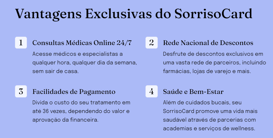 Imagine um clube onde o cuidado com seu sorriso é prioridade a todo momento, onde cada dia é uma oportunidade para desfrutar de saúde bucal e bem-estar. Isso é o SorrisoCard, uma comunidade exclusiva dedicada a oferecer o melhor em odontologia e muito mais.